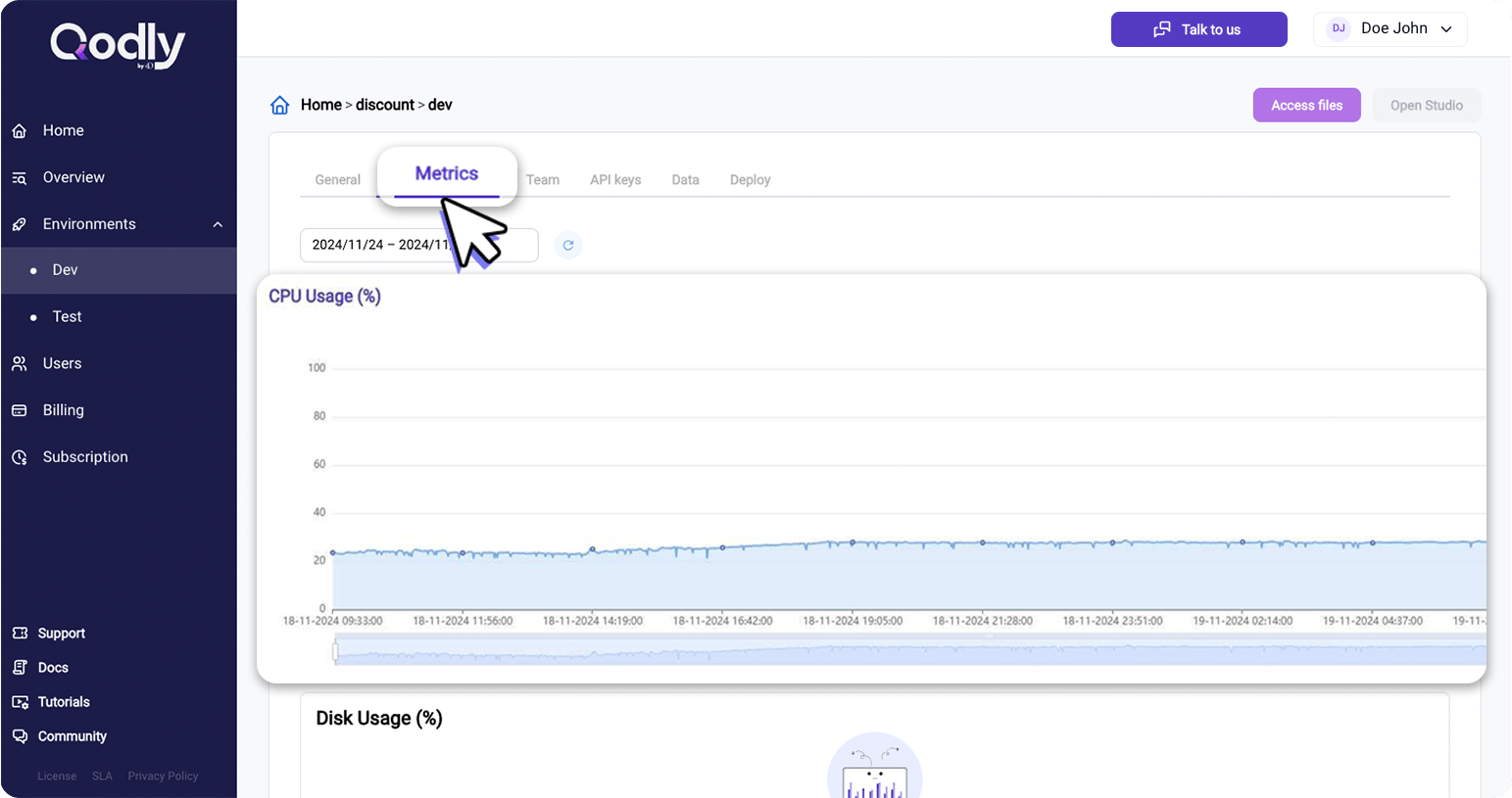 The cloud console offers comprehensive metrics for monitoring your app, tracking usage, reviewing logs, configuring data backup intervals, securely accessing files via FTP, and more to ensure your app's optimum performance with ease.